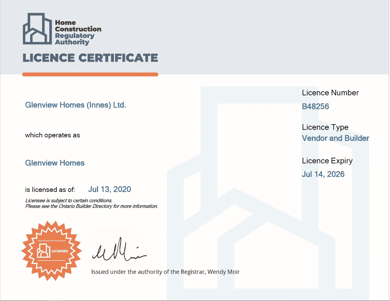 HCRA Licence Certificates