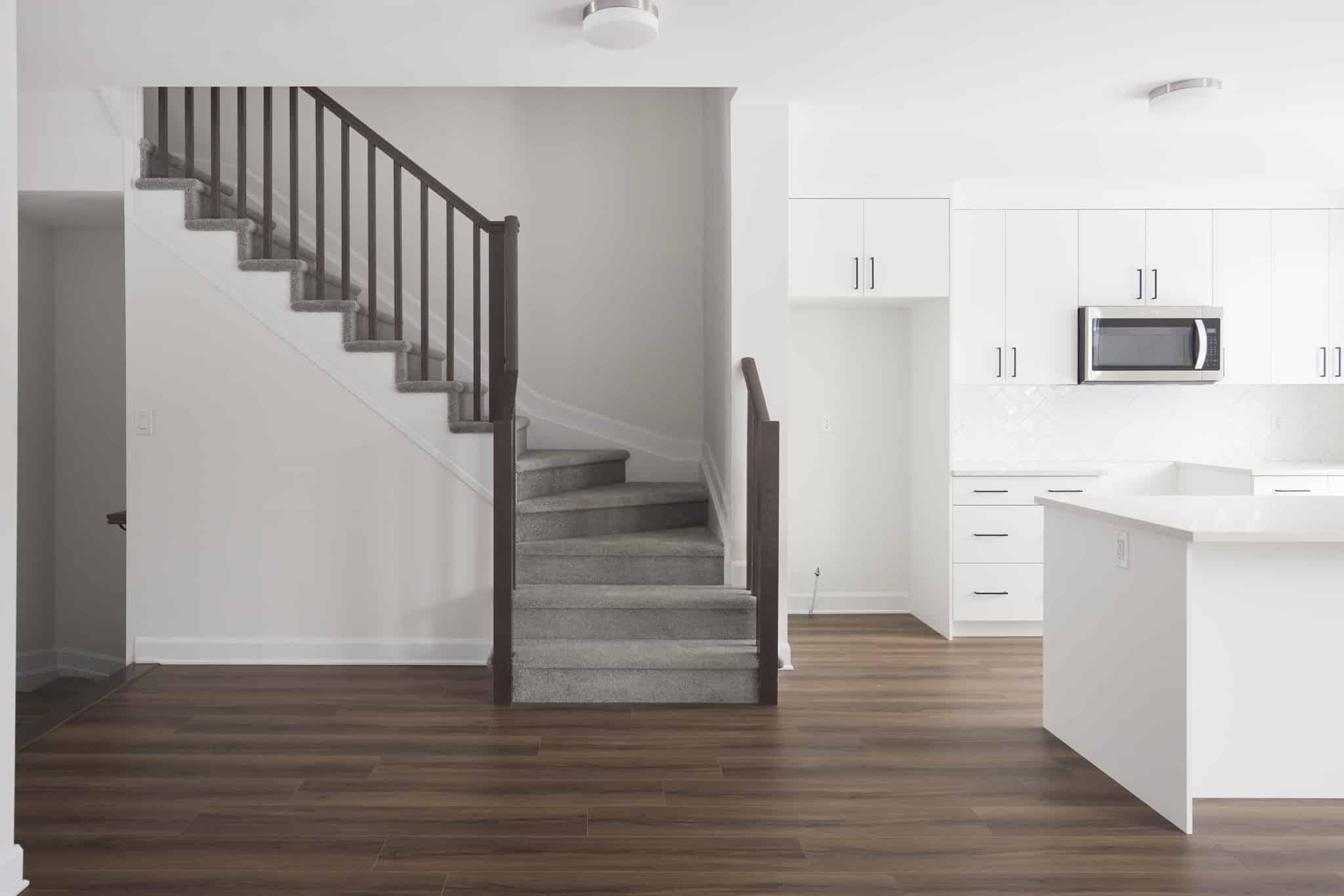 - Kitchen upgraded to “enhanced” package, featuring: 39″ upper cabinets, soft close drawers, a pots + pans drawer